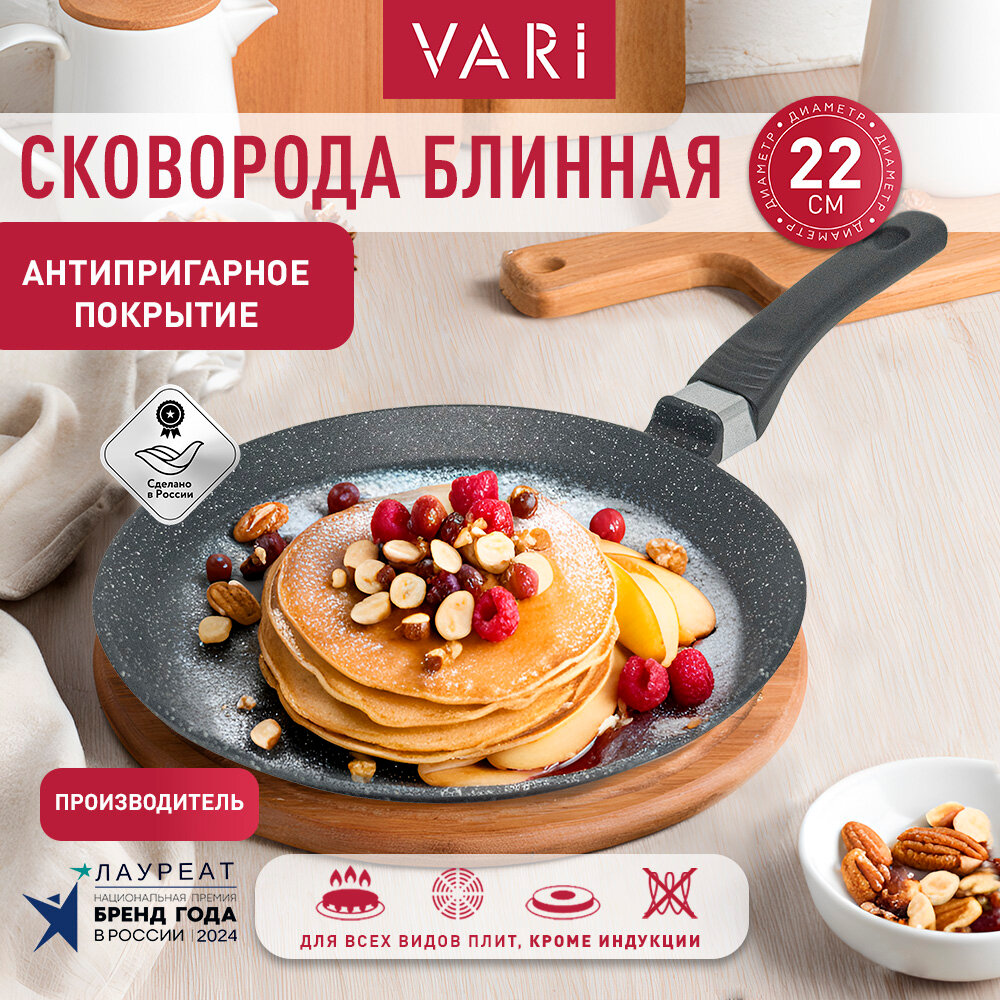 VARI Сковорода литая блинная "Классическая каменная" с антипригарным покрытием , D22см KKLBL53122