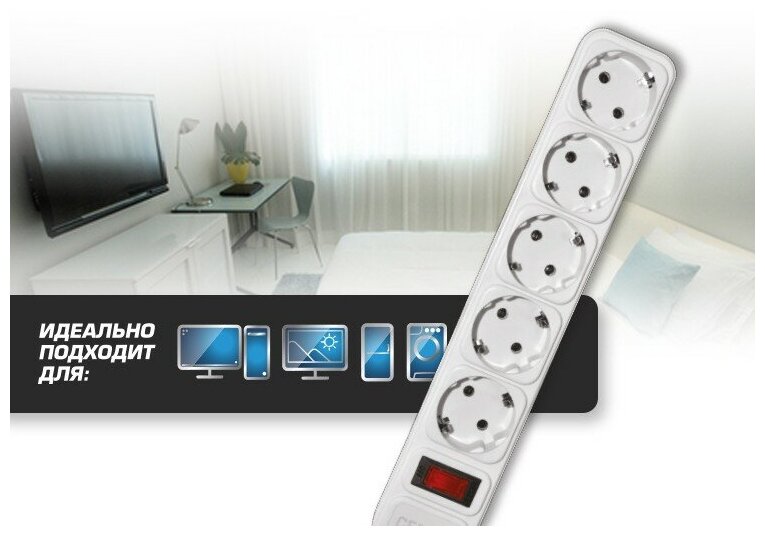 Сетевой фильтр Centek CT-8900-5-1,8 (белый) информация: