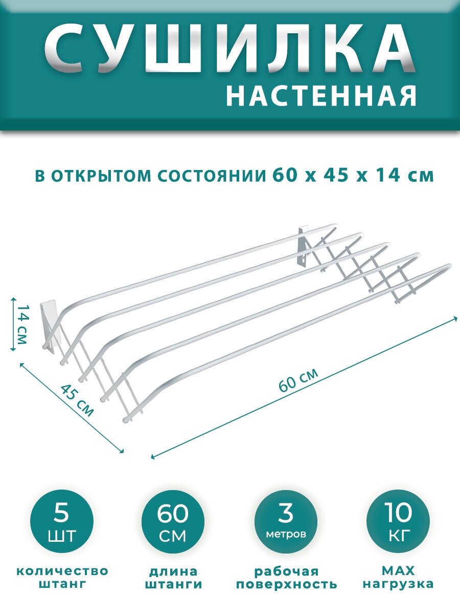 Сушилка для белья настенная раздвижная 60 см металлическая бытовая информация: