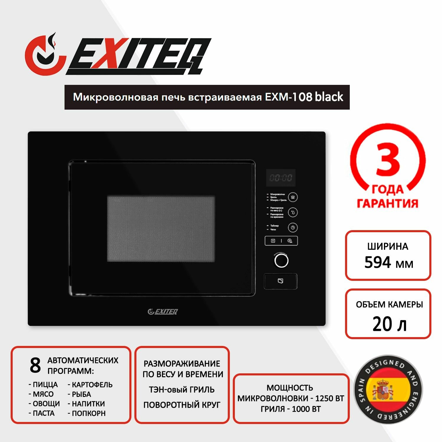 Встраиваемая микроволновая печь EXITEQ EXM-108 black, 20 л, высота 38 см, черный, Китай 22 753 ₽
