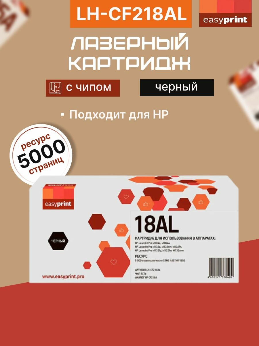 10 цен на 18AL Картридж EasyPrint LH-CF218AL для HP LJ Pro M104a/M104w/M132a/M132fn/M132fw/M132nw (5000 стр.) с чипом