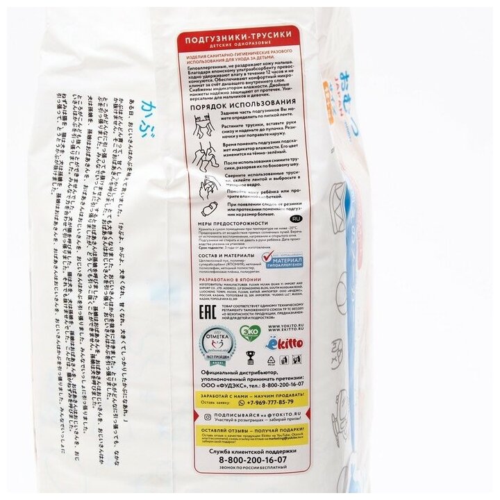 Ekitto трусики-подгузники размер XL (12+ кг) 34 шт информация: