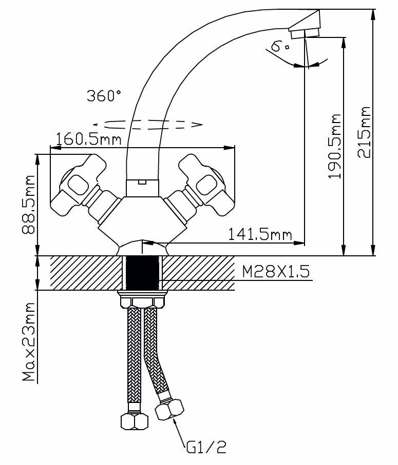 | Комплектация | Гибкая подводка 2 шт - 1/2" |