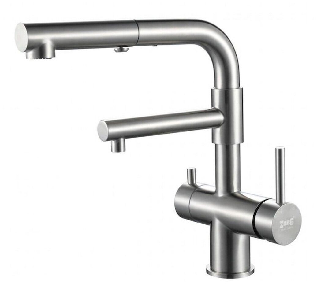 Смеситель для кухни под фильтр с вытяжной лейкой Zorg SZR-3216 Inox