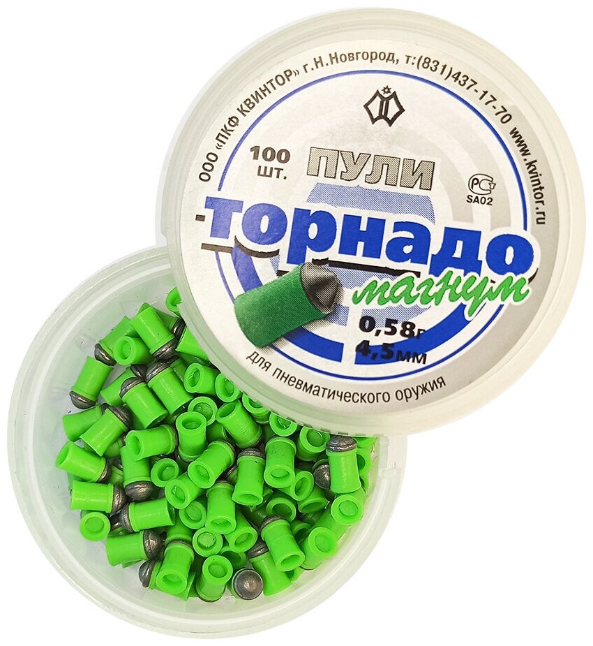 10 цен на Пули для пневматики 4,5 мм Квинтор Торнадо-Магнум, 100шт, 0,58гр. зеленые металлопластиковые