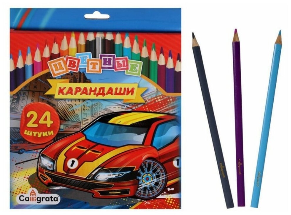 Карандаши Calligrata Машинка, 24 цвета, деревянные, трехгранные, 2B, 1 упаковка