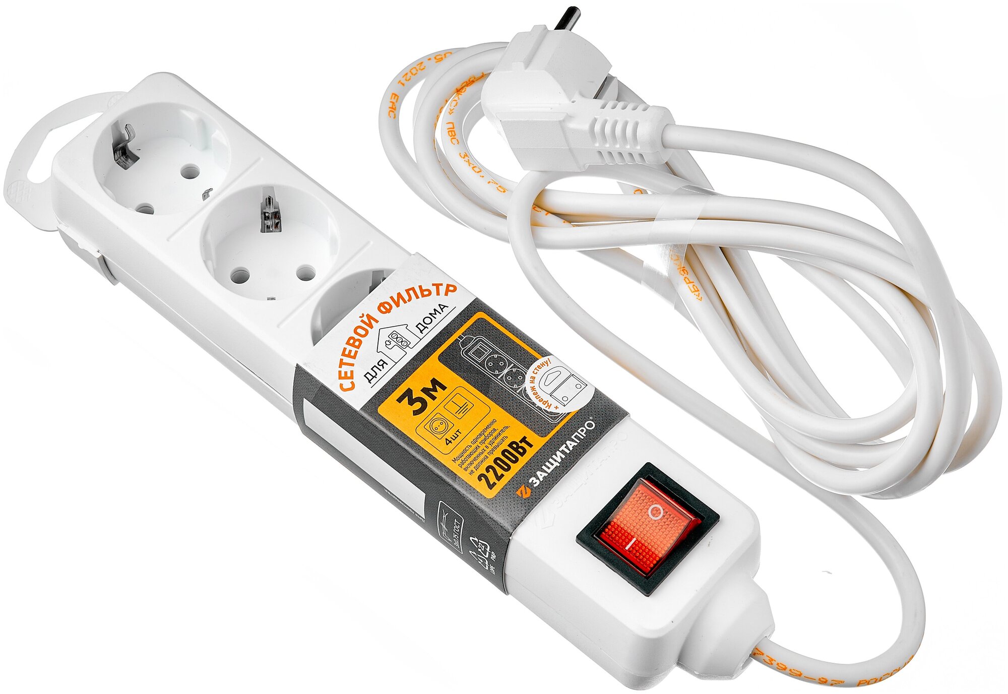 10 цен на Удлинитель с заземлением Защита Про 2200 Вт 4 розетки 3 м