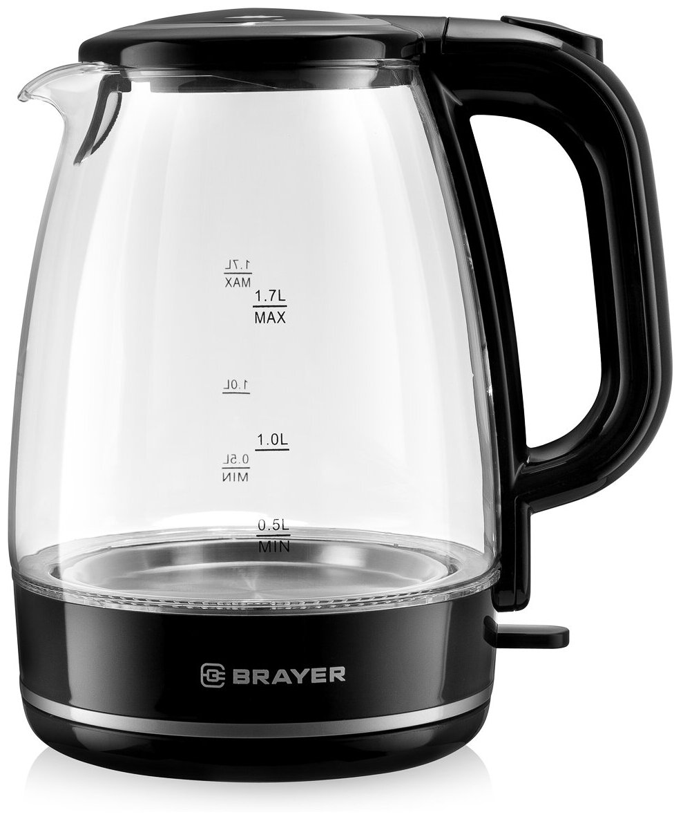 Чайник электрический BRAYER BR6104BK, 2200 Вт, 1,7 л, черный/пластик