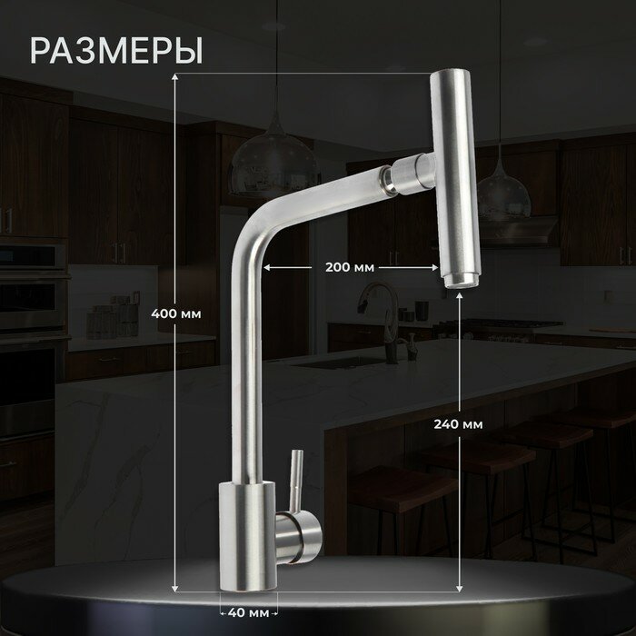 Смеситель для кухни ZEIN ZS-1, "микрофон", картридж 35 мм, нержавеющая сталь, сатин информация: