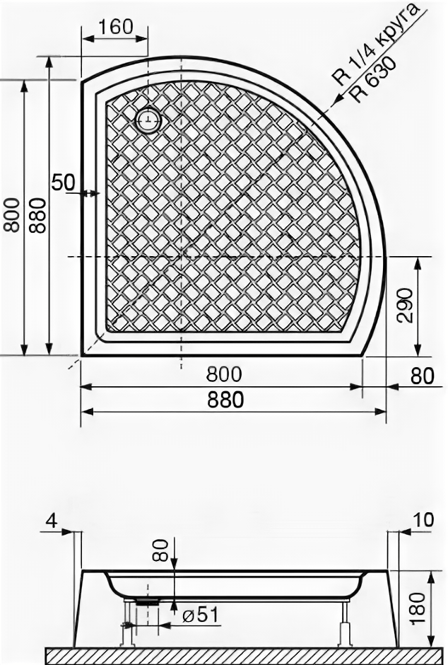 | Форма | четверть круга |