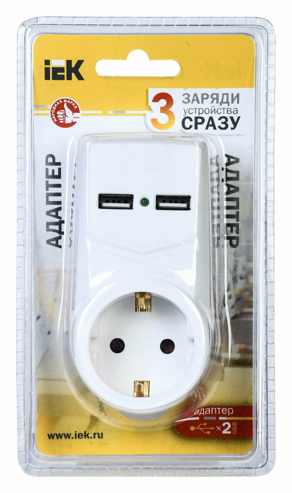 Адаптер Т-01/01 1 место 2P+PE 16А 2хUSB 2,1A белый IEK
