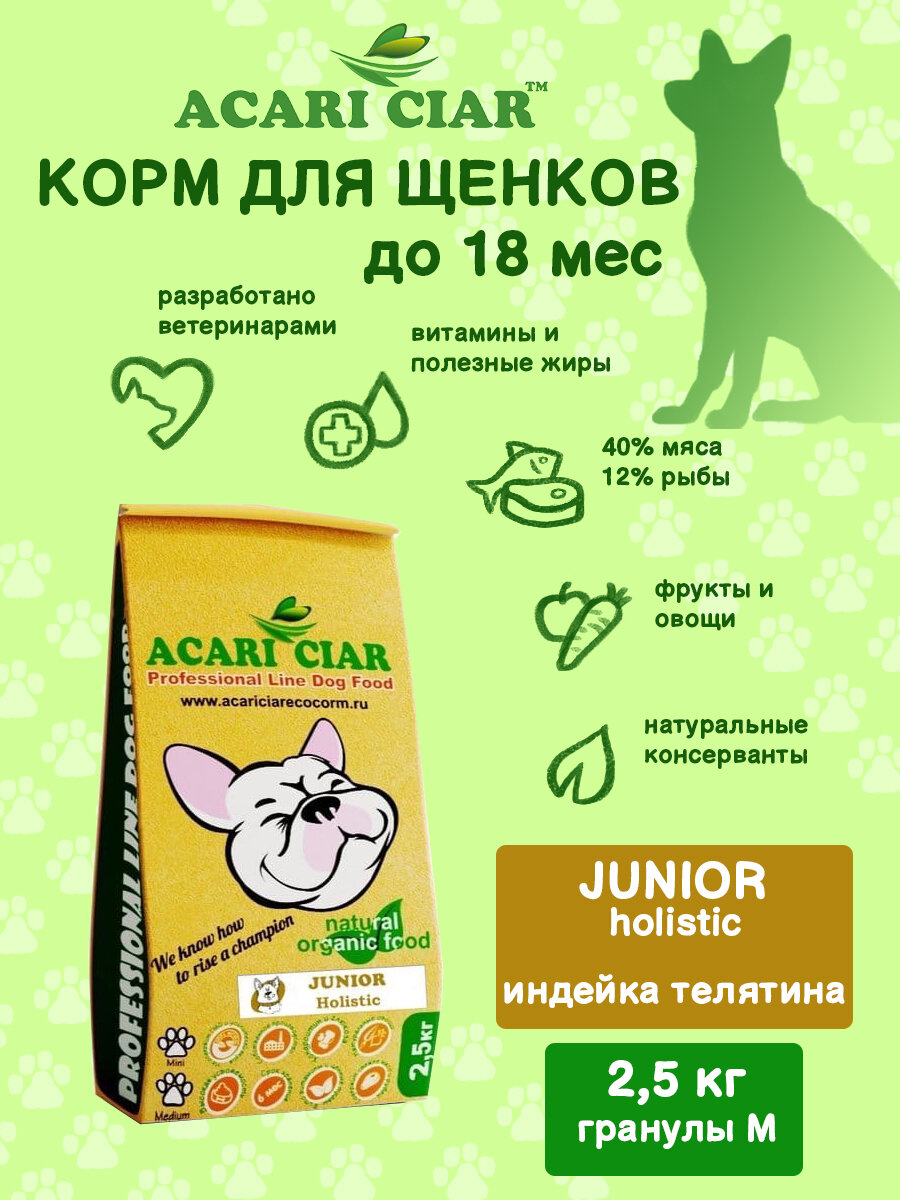 Сухой корм для собак ACARI CIAR HOLISTIC JUNIOR медиум гранулы 2,5 кг информация: