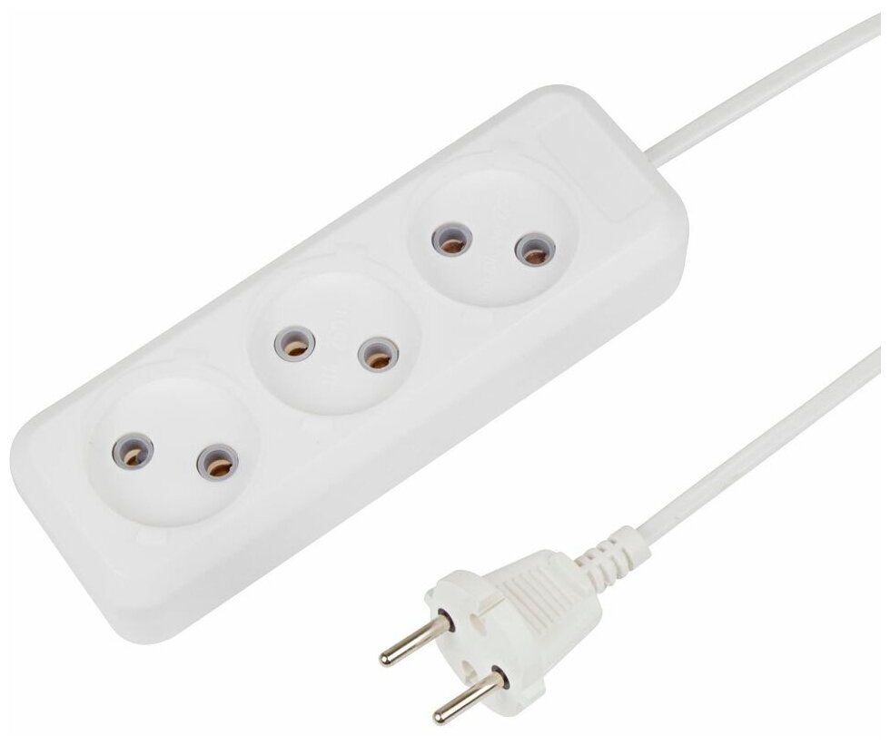 Удлинитель REXANT 3 гнезда, 3 м, 2х0.75 мм², б/з, белый (Сделано в России)