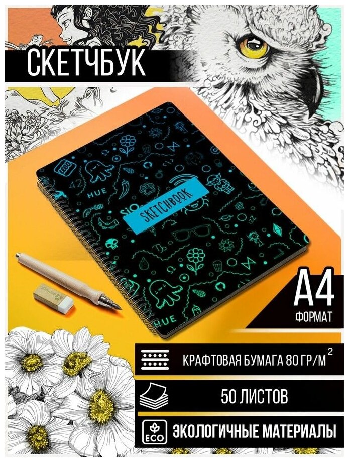 Скетчбук, Блокнот для рисования A4 50 крафт листов школа - 3221 информация: