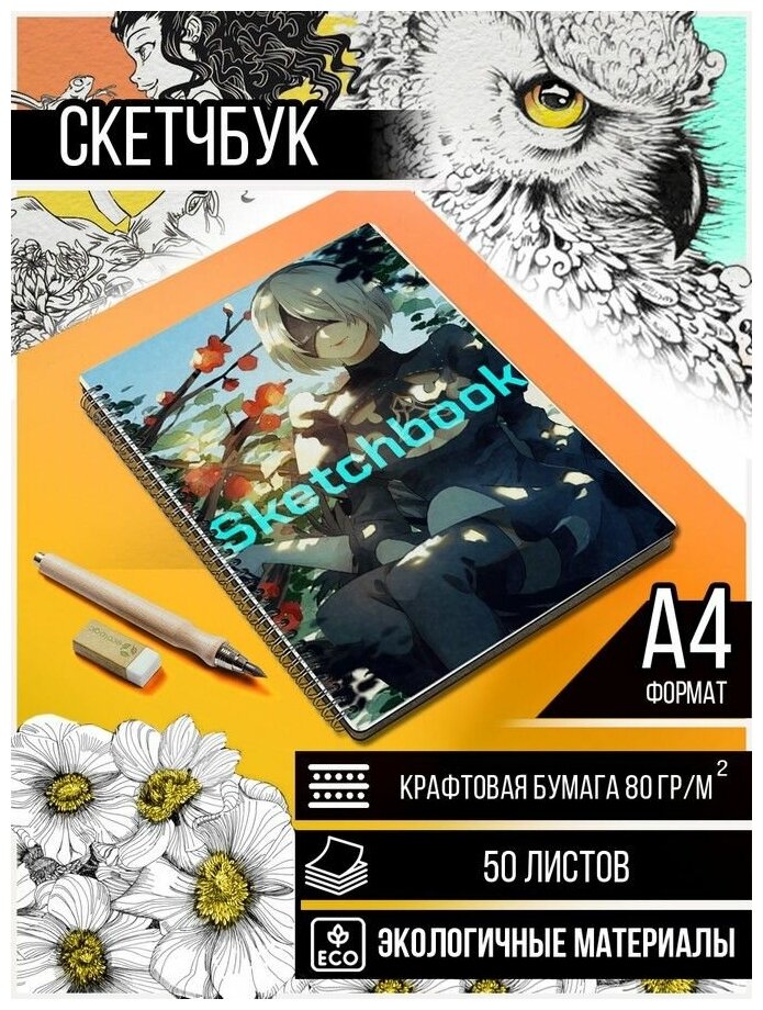Отзывы на Скетчбук, Блокнот для рисования A4 50 крафт листов Игры NieR Automata - 2135