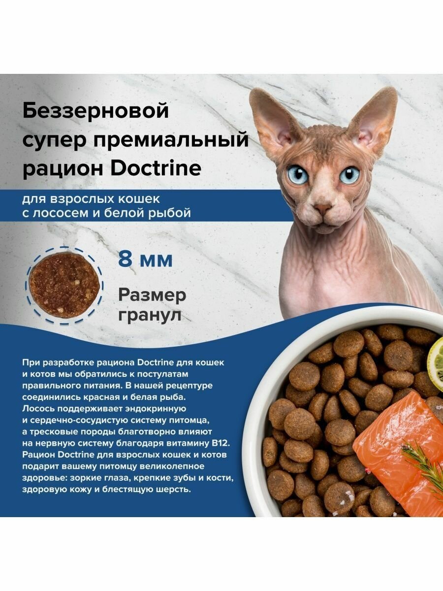 10 цен на Сухой корм для кошек Беззерновой DOCTRINE, Лосось и белая рыба 800г