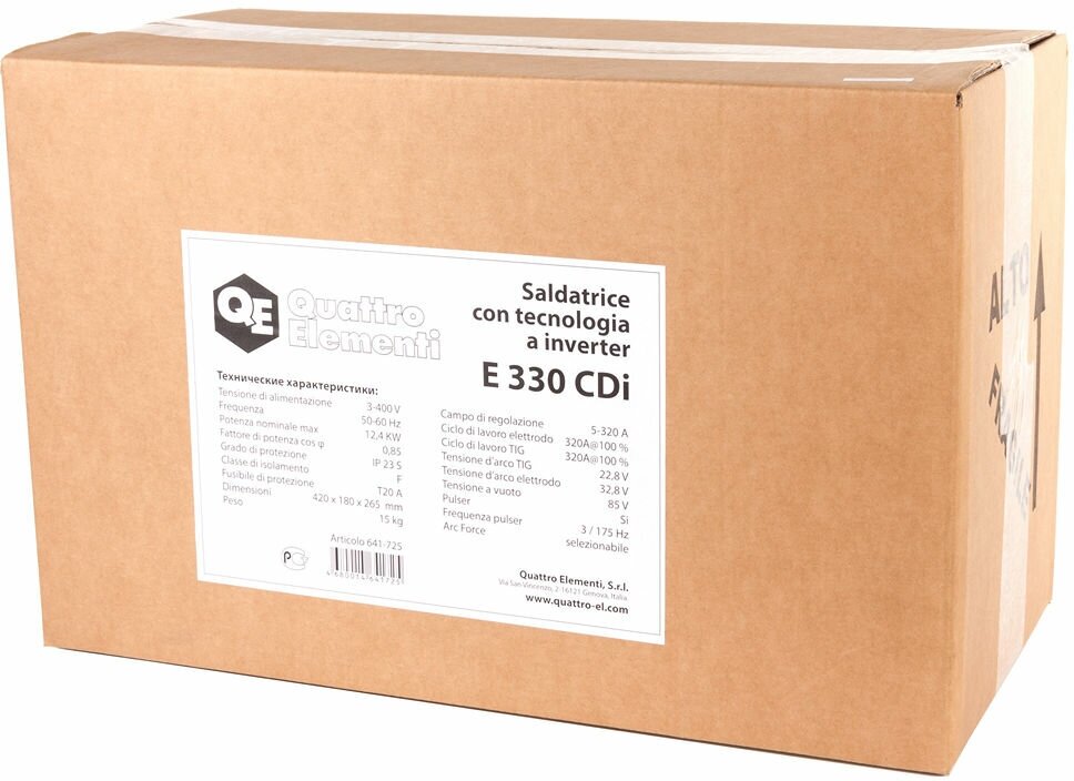 Аппарат электродной сварки, инвертор QUATTRO ELEMENTI E 330 (320А, ПВ 100%, до 6мм, дисплей, TIG-Lift, 15кг, 3ф-400В) информация: