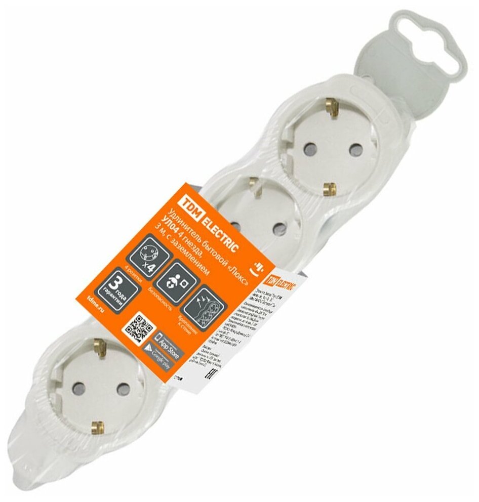 TDM SQ1303-0236 Удлинитель бытовой "Люкс" УЛ04 4 гнезда, 3м, с/з, с з/ш, ПВС 3х1мм2 16А/250В бело-се .