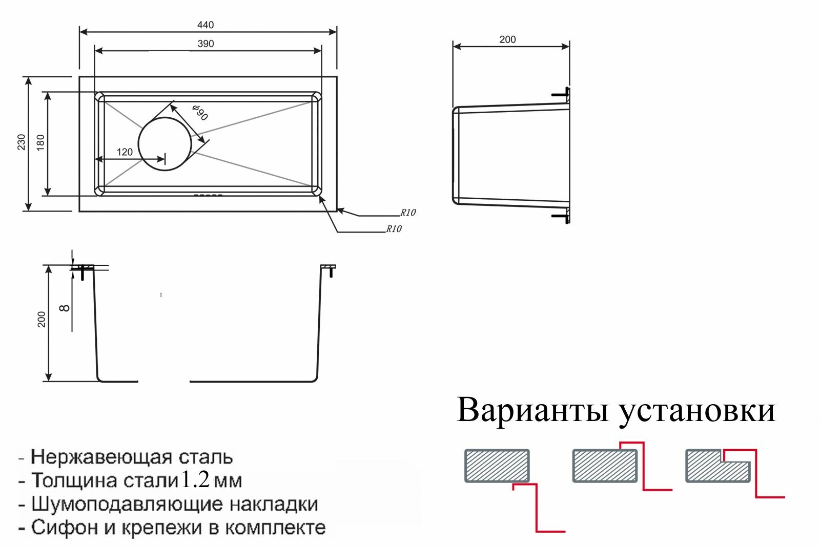 Мойка кухонная ZorG R 58-2-44 матовая, оборачиваемая, толщина 1,5 мм