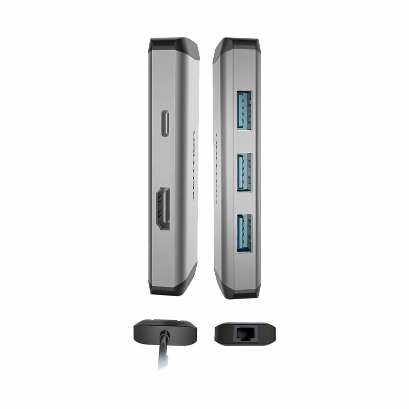 Концентратор USB Type C Vention Cnchb (usb 3.1 M / OTG USB 3.0 F x 2 / Hdmi 19F / RJ45 F / USB Type