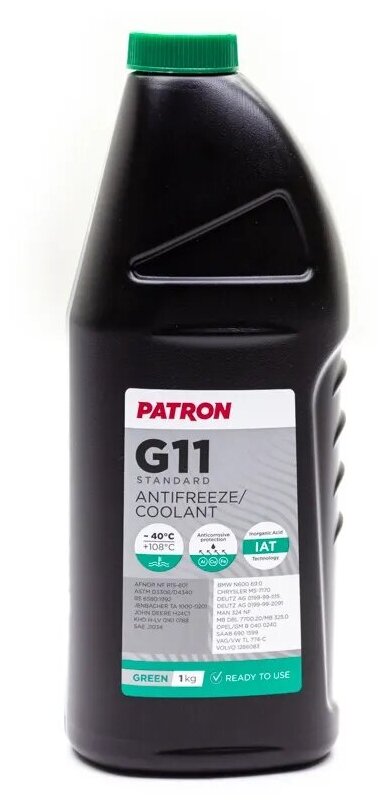 PATRON PCF4001 Антифриз 1кг (0.87л) - зеленый готовый, PATRON GREEN G11, TL 774-C, SAE J1034, N600690, MS-7170, MAN 324 NF, MB 325.0, B0400240, 6901599, 1286083