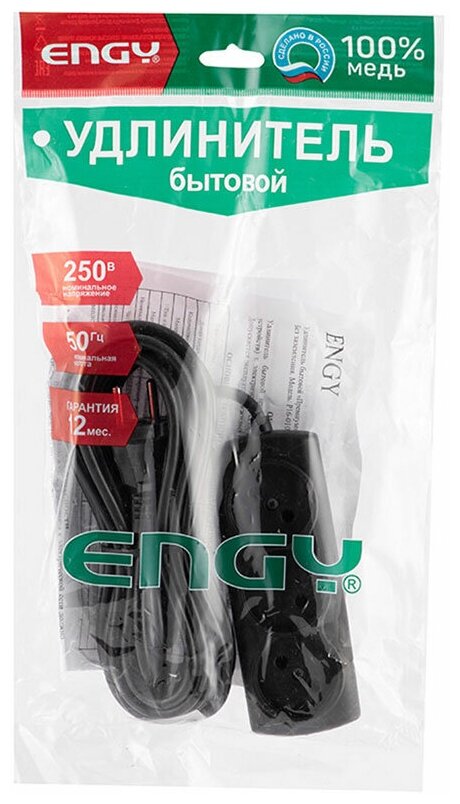 Отзывы на Удлинитель Engy Премиум, ПВС 2 x 0,75 мм, 3 розетки, 7 м, черный