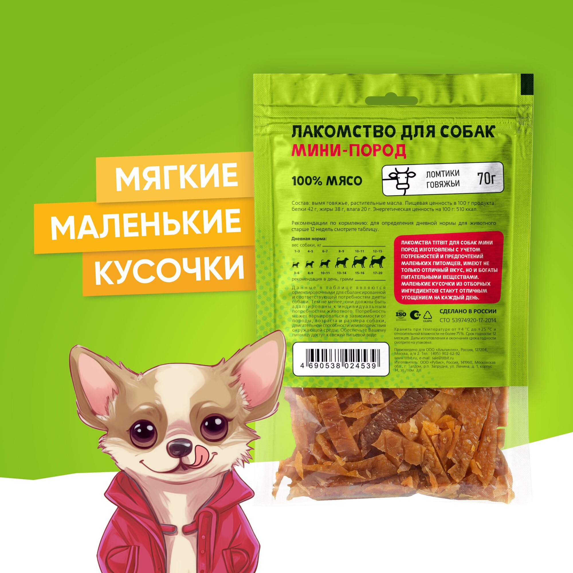 ТитБит ломтики говяжьи лакомство для собак мини пород, 70г информация: