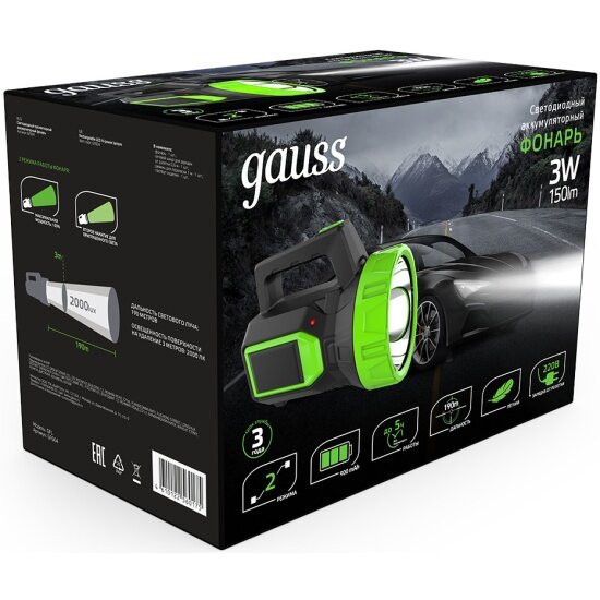 Отзывы на Фонарь прожекторный Gauss модель GFL604 3W 150lm lead acid 900mAh LED 1/10/40