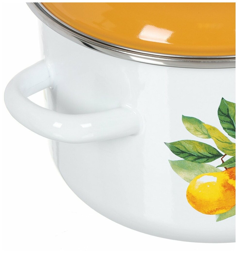 Кастрюля эмалированная 1,5 л с ободком белая с рисунком Фруктовая фантазия