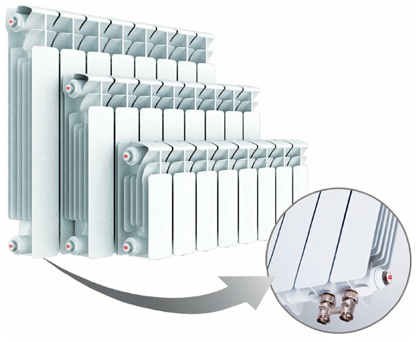 радиатор секционный биметаллический RIFAR Base Ventil BVR 500 10 секций с нижним правым подключением информация: