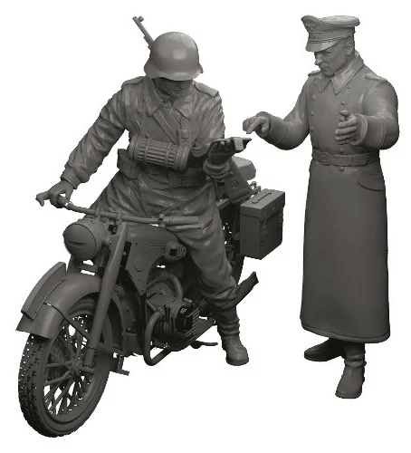 Сборные солдатики ZVEZDA Немецкий мотоцикл Р-12 с водителем и офицером 1/35