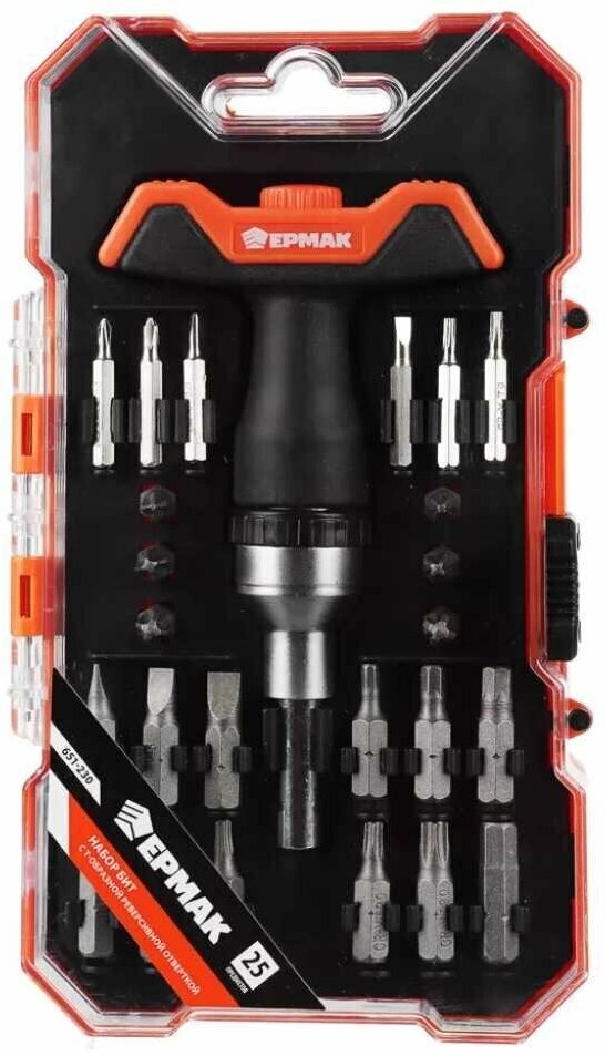 Набор бит с Т-образной реверсивной отверткой, 25 предметов ермак 651-230 информация: