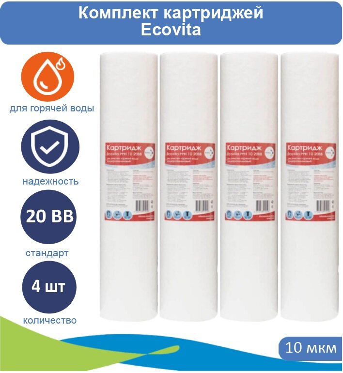 Картридж полипропиленовый Ecovita PPH 10 20BB для горячей воды - 4 шт. информация: