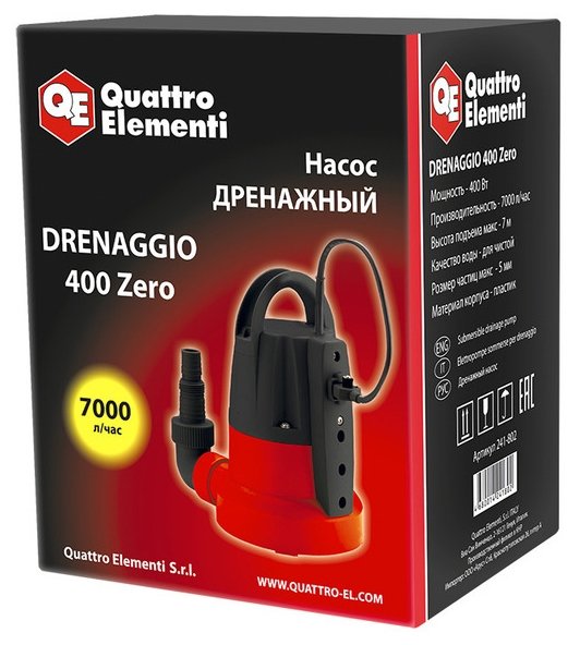 QUATTRO ELEMENTI Дренажный насос Drenaggio 400 Zero 400 Вт, 7000 л/час, 7 м, 241-802 7 040 ₽