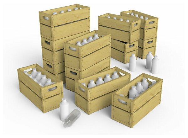 Склеиваемая пластиковая модель Молочные бутылки и деревянные ящики. Масштаб 1:35 информация: