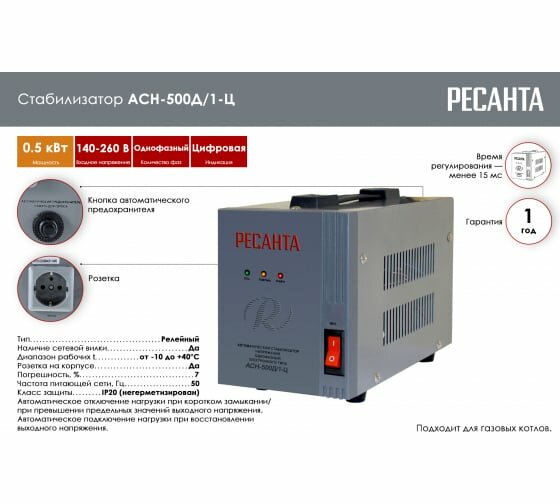 Стабилизатор напряжения Ресанта АСН-500Д/1-Ц информация: