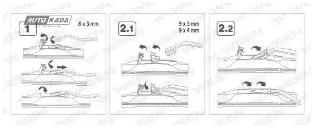 Стеклоочиститель бескаркасный 21/530mm адаптер-трансформер (hook, side pin, push button, narrow push Ween 1007021