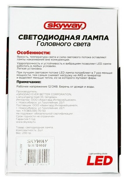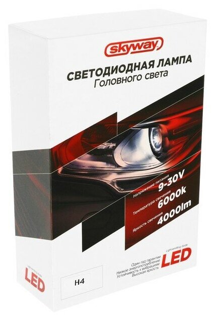 Лампа автомобильная Skyway, H4 (х7), 12/24 В, 28 Вт, 6000 K, LED, набор 2 шт информация: