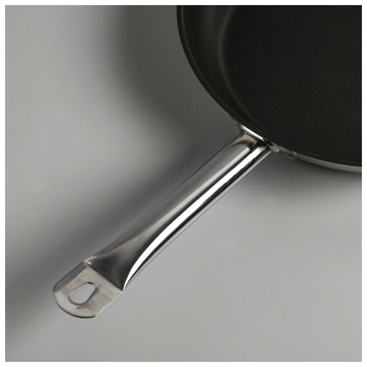10 цен на Сковорода Общепит, d=30 см, толщина корпуса 0,6 мм, дно 3,5 мм, с теплораспределителшьным слоем, антипригарное покрытие, индукция, цвет металлик