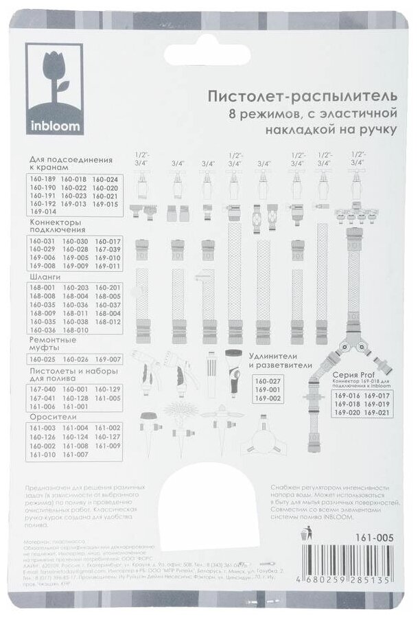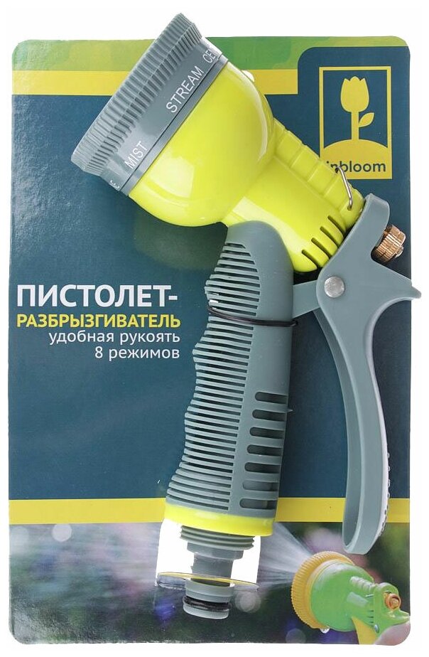 Inbloom Пистолет-распылитель, 8 режимов, с эластичной накладкой на ручку, пластик 161-005 . информация: