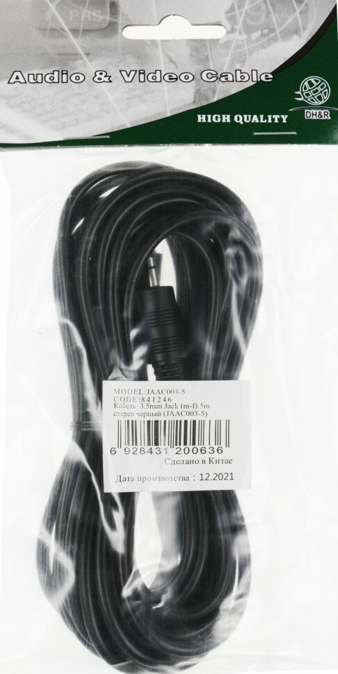Кабель аудио Ningbo JAAC003-5 Jack 3.5 (m)/Jack 3.5 (f), 5 м, черный информация: