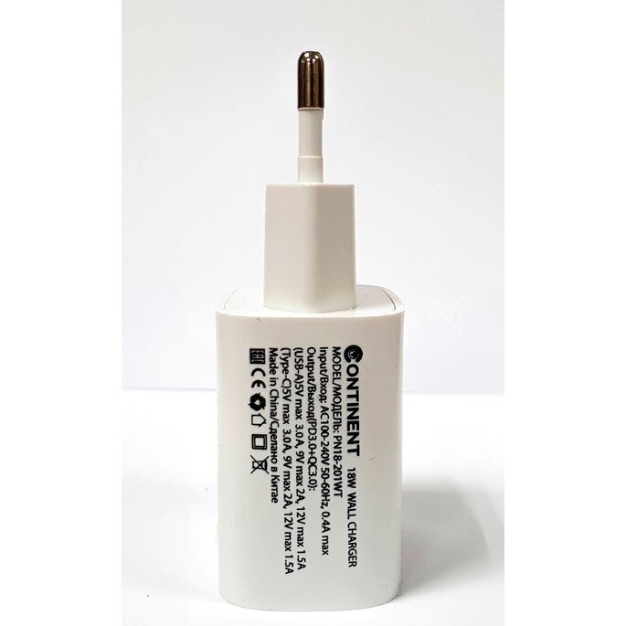 Зарядное устройство Continent PN18-201 WT для смартфонов USB информация: