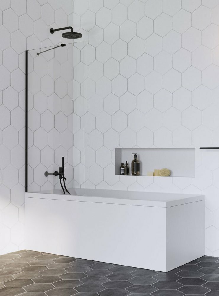 Шторка для ванны Abber Immer Offen 100x140 AG72100B профиль черный, стекло с рисунком