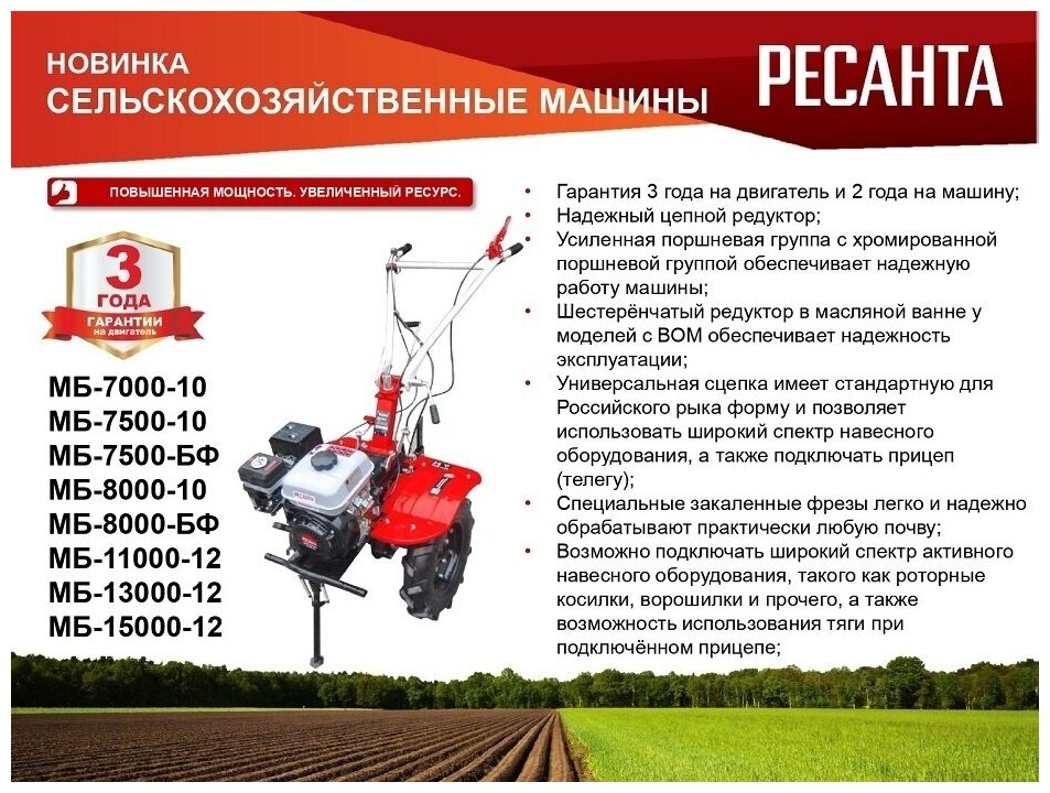 Сельскохозяйственная машина МБ-13000Р-12 Ресанта, мотоблок, мотокультиватор
