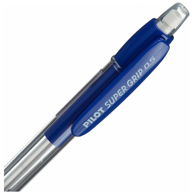 Карандаш механический 0,5 мм, PILOT H-185 "Super Grip", ластик, резиновый грип, корпус синий, H-185-SL, Н-185 Комплект - 12 шт.