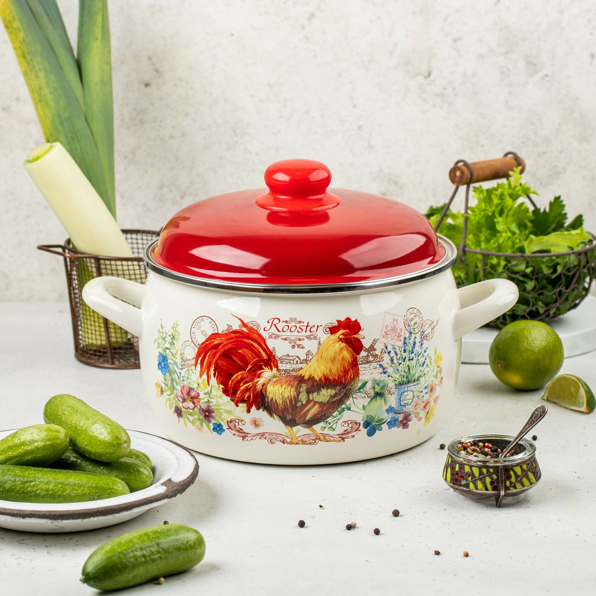 Кастрюля эмалированная Metrot Золотой петушок с крышкой, 2,2 л 1 759 ₽