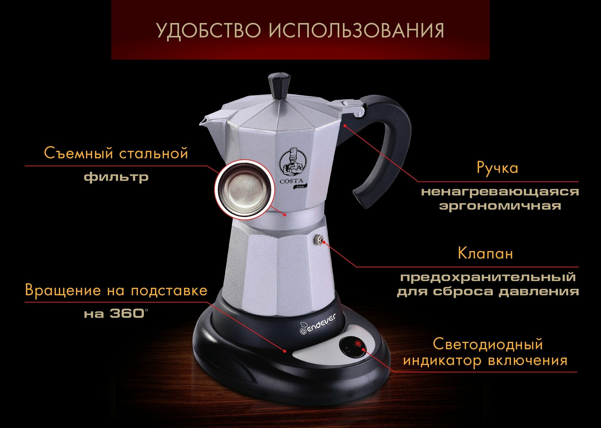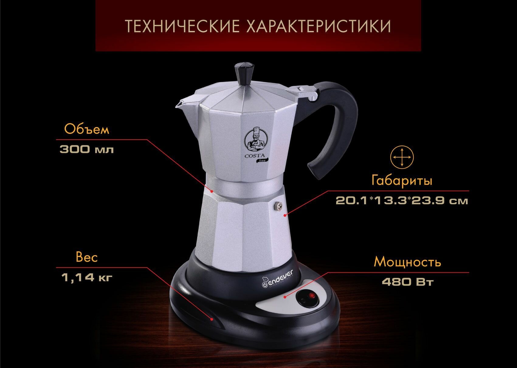 10 цен на Гейзерная кофеварка электрическая ENDEVER Costa-1010 / 480 Вт / 300 мл / 3-6 чашек
