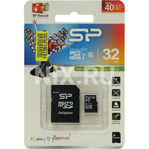 Карта памяти Silicon Power microSDHC 32 ГБ Class 10, UHS-I U1, адаптер на SD информация: