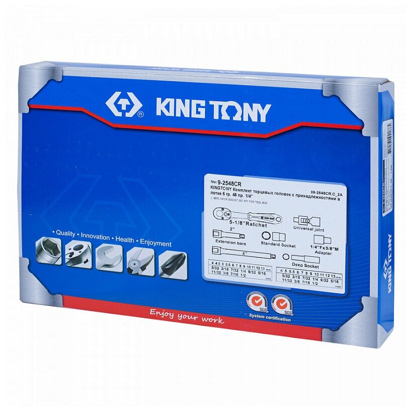 KING TONY Набор торцевых головок 1/4" с принадлежностями, ложемент, 48 предметов 9-2548CR