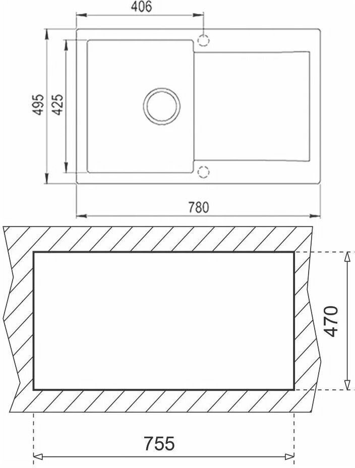 Мойка для кухни из искусственного камня Ulgran U-406-308, черный